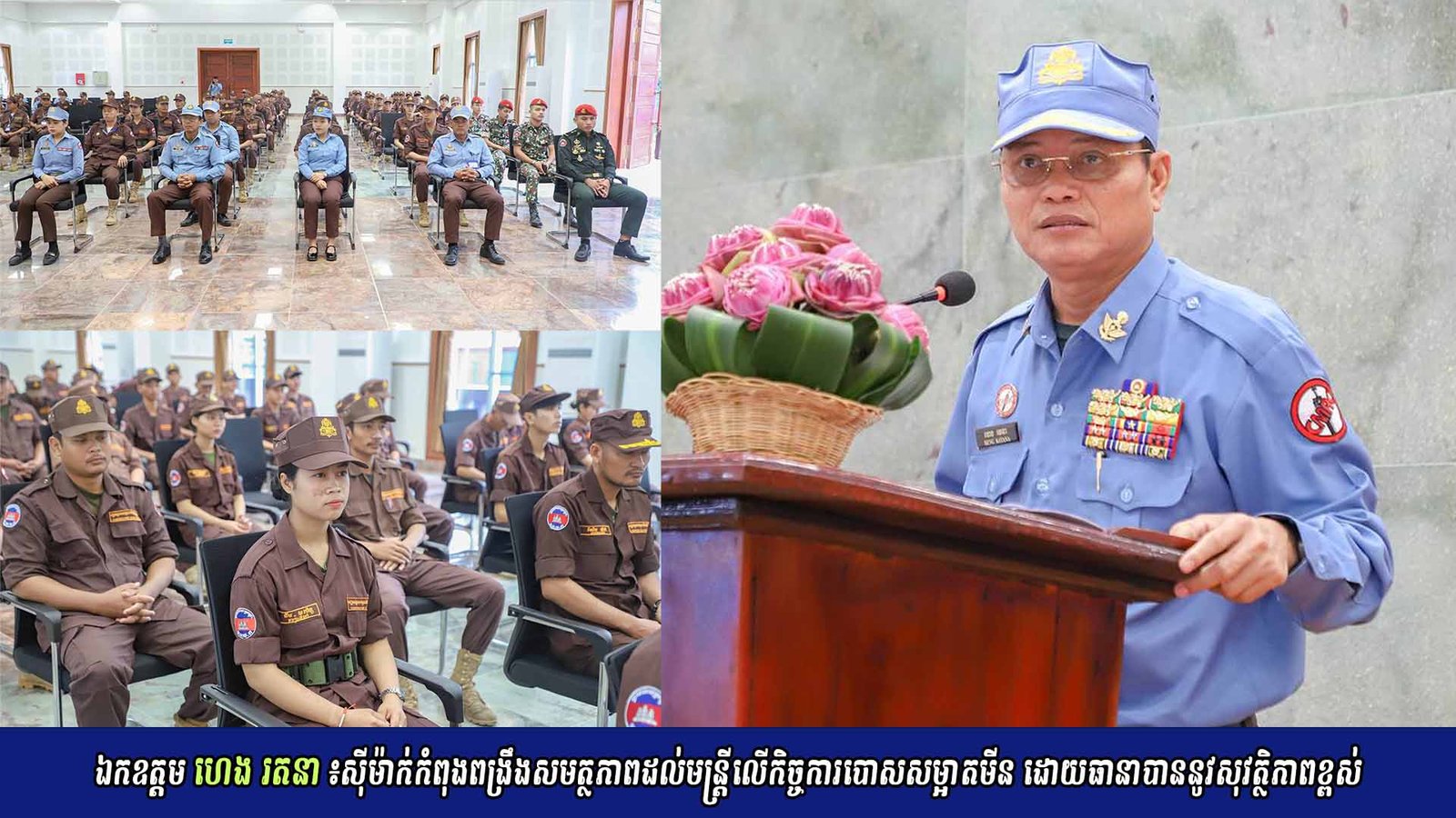 58 កំពង់ឆ្នាំង ៖ឯកឧត្តម ហេង រតនា ប្រតិភូរាជរដ្ឋាភិបាល ទទួលបន្ទុកជាអគ្គនាយកមជ្ឈមណ្ឌលសកម្មភាពកំចាត់មីនកម្ពុជា បានថ្លែងឲ្យដឹងថា បច្ចុប្បន្នស៊ីម៉ាកបាននឹងកំពុងយកចិត្តទុកដាក់ពង្រឹងសមត្ថភាពជំនាញ ក្នុងការទទួលខុសត្រូវ លើកិច្ចប្រតិបត្តិការបោសសំអាតមីនដល់មន្ត្រីឲ្យមានសមត្ថភាពខ្ពស់ និងមានភាពច្បាស់លាស់ លើកិច្ចការបោសសំអាតមីន ដោយធានាបាននូវសុវត្តិភាពខ្ពស់ ។ ឯកឧត្តម ហេង រតនា បានថ្លែងបញ្ជាក់បែបនេះ នៅក្នុងពិធីបិទវគ្គលើជំនាញបច្ចេកទេសបោសសម្អាតមីន និងកម្ទេចគ្រាប់យុទ្ធភណ្ឌមិនទាន់ផ្ទុះ កម្រិត១ កម្រិត២ ជំនាន់ទី៤,វគ្គហ្វឹកហ្វឺនអ្នកឯកទេសបញ្ជាសុនខ បឋមជំនាន់ទី២៤ និងវគ្គបំប៉នជំនាញថែទាំ និងបង្ហាត់សុនខជំនាន់ទី៥ កាលពីថ្ងៃទី២១ ខែវិច្ឆិកា ឆ្នាំ២០២៥ នៅវិទ្យាស្ថានបច្ចេកទេសសកម្មភាពកំចាត់មីន ស្ថិតនៅខេត្តកំពង់ឆ្នាំង ។ ឯកឧត្តម បន្តថា វគ្គហ្វឹកហ្វឺននេះ ពិតជាមានសារសំខាន់បំផុតដល់សិក្ខាកាមទាំងអស់ ដែលបានសិក្សានូវបទពិសោធន៍ បច្ចេកថ្មីៗក្នុងការបោសសម្អាត មីន និងយុទ្ធភ័ណ្ឌមិនទាន់ផ្ទុះ ប្រកបដោយសុវត្តិភាពខ្ពស់ ក្នុងការបំពេញការងារជាក់ស្តែង របស់ខ្លួននៅចំការមីន ។ ឯកឧត្តម ហេង រតនា បានលើកឡើងនូវចំណុចស្នូល២សំខាន់ដើម្បីពង្រឹងសមត្ថភាព ធនធានមនុស្សរបស់អង្គភាពស៊ីម៉ាក់ ៖ទី១ បានខិតខំកសាងធាតុទន់ ទាំងខ្លឹមសារ ឯកសារ ចំណេះដឹងគ្រូវិជ្ជាជីវ: និងប្រពន្ធ័បែបបច្ចេកទេសឌីយីថល ស្របតាមគោលនយោបាយរបស់រាជរដ្ឋាភិបាលនិងនិយាមរបស់ក្រសួងអប់រំ យុវជននិងកីឡា ក៏ដូចជាតម្រូវការបច្ចេកទេសវិជ្ជាជីវៈជាតិ និងអន្តរជាតិ នៃវិស័យមីន។ទី២,ធាតុរឹង ការកសាងហេដ្ឋារចនាសម្ព័ន្ធ អគារ បរិស្ថានធម្មជាតិ និងសម្ភារបច្ចេកទេស ឆ្លើយតបនឹងតម្រូវការហ្វឹកហ្វឺនអ្នកជំនាញជាតិនិងអន្តរជាតិ ហើយតម្កល់គោលដៅប្រែក្លាយមណ្ឌលនេះឱ្យក្លាយជាមណ្ឌលហ្វឹកហ្វឺនបច្ចេកទេសវិស័យមីនបម្រើទាំងក្នុងតំបន់និងអន្តរជាតិ។ ឯកឧត្តម ហេង រតនាបានបន្ថែមទៀតថា ឯកឧត្តម ពិតជាមានមោទនភាពក្រៃលែង ដោយបានឃើញច្បាស់អ្នកឯកទេសប្រកបដោយសក្តានុពលបន្តវេន ដែលមានស្មារតីស្នេហាជាតិរឹងមាំ ឆន្ទះក្លាហ៊ានមុតស្រួច និងមានឥរិយាបថល្អ គោរពបទបញ្ជារបស់អង្គភាពយ៉ាងម៉ឺងម៉ាត់ ៕ ចែករំលែក: Share on Facebook (Opens in new window) Facebook Email a link to a friend (Opens in new window) Email Share on LinkedIn (Opens in new window) LinkedIn Share on X (Opens in new window) X Share on Telegram (Opens in new window) Telegram រូបអ្នកនិពន្ធ ការផ្សព្វផ្សាយដោយអ្នកនិពន្ធ នាវាចម្បាំងរបស់រុស្ស៊ីចំនួន២គ្រឿង ចូលចតនៅកំពង់ផែស្វយ័តក្រុងព្រះសីហនុ ដើម្បីបំពេញទស្សនកិច្ចរយៈពេល៣ថ្ងៃនៅកម្ពុជា សម្តេចធិបតី ហ៊ុន ម៉ាណែត បញ្ជាឱ្យដកអាជ្ញាប័ណ្ណក្រុមហ៊ុនណា ដែលលួចនាំប្រេងខុសច្បាប់ ពីប្រទេសថៃចូលមកលក់នៅកម្ពុជា ឯកឧត្