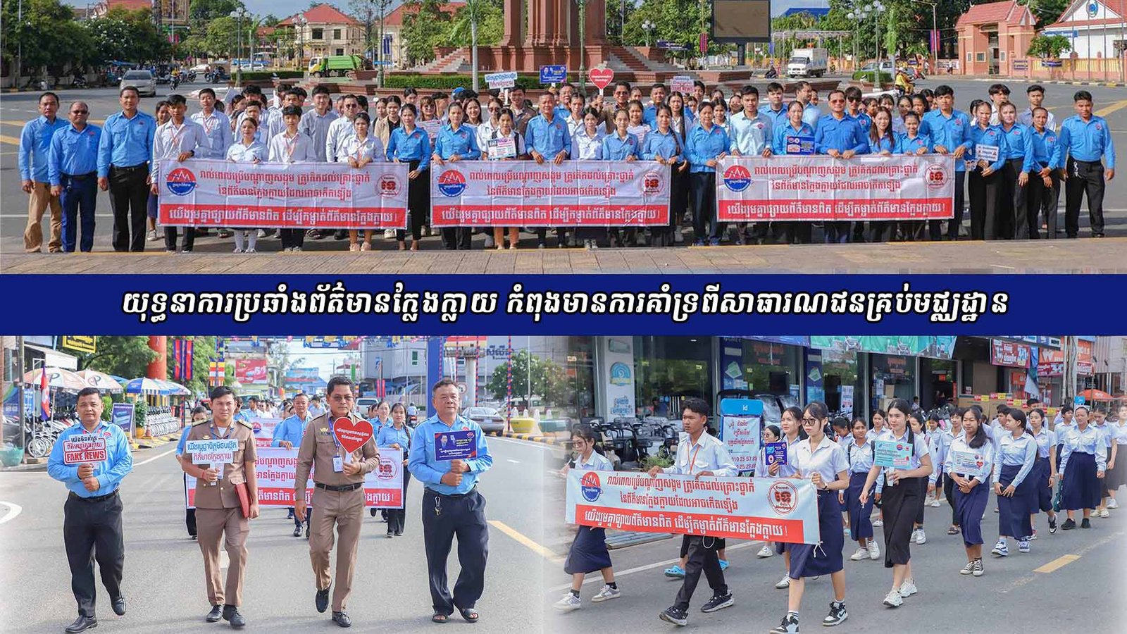 60 កំពង់ឆ្នាំង ៖យុទ្ធនាការប្រឆាំងព័ត៌មានក្លែងក្លាយក្រោមទិសស្លោក« និយាយថាទេចំពោះព័ត៌មានក្លែងក្លាយ »បានចាប់ផ្តើមពីថ្ងៃទី១ ខែមេសា ឆ្នាំ២០២៥ ក្នុងគោលបំណងដើម្បីកាត់បន្ថយឲ្យនៅកម្រិតតិចបំផុត ហើយឈានទៅលប់បំបាត់ទាំងស្រុង នូវព័ត៌មានក្លែងក្លាយពីលំហព័ត៌មាន នៅក្នុងសង្គមកម្ពុជា សំដៅធានាឲ្យបាននូវសន្តិសុខព័ត៌មាន ។ យុទ្ធនាការនេះបាន នឹងកំពុងដំណើរការយ៉ាងសកម្ម ដោយទទួលបានការគាំទ្រពីសាធារណ:ជនគ្រប់ទិសទី រីឯការអនុវត្តមានការចូលរួមយ៉ាងផុលផុសពីថ្នាក់ដឹកនាំ មន្ត្រីរាជការ មន្ត្រីអាជ្ញាធរមូលដ្ឋាន និងតួអង្គពាក់ព័ន្ធ ដែលបានធ្វើឲ្យយុទ្ធនាការនេះ កំពុងប្រក្លាយជាចលនាជាតិមួយ ក្នុងការទប់ស្កាត់ និងលុបបំបាត់នូវព័ត៌មានក្លែងក្លាយ ក្លែងបន្លំ បំភ្លៃ បំភាន់ ដែលកំពុងចរាចរក្នុងសង្គម ជាពិសេសតាមរយះបណ្តាញសង្គម ។ ដោយឡែកសម្រាប់ខេត្តកំពង់ឆ្នាំង បានធ្វើយុទ្ធនាការនេះយ៉ាងសកម្ម នៅតាមទីប្រជុំជន ផ្សារ សាលារៀន និងអង្គភាពរដ្ឋ មានដូចជាការចុះផ្សព្វផ្សាយ និងចែកខិតបណ្ណ ចាក់ខ្សែអាត់សំឡេងតាមឧឃោសន:ស័ព្ទ និងការដង្ហែរក្បួនតាមដងផ្លូវ ។ដើម្បីបង្កើនការយល់ដឹង ដល់ប្រជាពលរដ្ឋ ក្នុងការប្រុងប្រយ័ត្នចំពោះព័ត៌មានក្លែងក្លាយ ដែលតែតតែកើតមាន នៅក្នុងសង្គម ។ តាមរយះយុទ្ធការនេះ បានធ្វើឲ្យប្រជាពលរដ្ឋមានការយល់ដឹងកើនឡើង ពិសេសមានការចូលរួមពីយុវជន ចំពោះការមិនចែករំលែកព័ត៌មានក្លែងក្លាយដូចមុន ជួយសាងបរិយាកាសព័ត៌មាន ដែលមានភាពទំនួលខុសត្រូវ និងចេះត្រួតពិនិត្យទៅលើព័ត៌មាន មុនធ្វើការចែករំលែកនិងផ្សព្វផ្សាយបន្ត ។ ចែករំលែក: Share on Facebook (Opens in new window) Facebook Email a link to a friend (Opens in new window) Email Share on LinkedIn (Opens in new window) LinkedIn Share on X (Opens in new window) X Share on Telegram (Opens in new window) Telegram រូបអ្នកនិពន្ធ ការផ្សព្វផ្សាយដោយអ្នកនិពន្ធ លោកជំទាវបណ្ឌិត ពេជ ចន្ទមុន្នី ចុះទស្សនកិច្ច ពិនិត្យការអនុវត្តកម្មវិធីផ្តល់អាហារតាមសាលារៀន ដោយប្រើប្រាស់កសិផលក្នុងសហគមន៍ នៅសាលាបឋមសិក្សាប្រាសាទជាងទង ខេត្តកំពង់ឆ្នាំង អនុប្រធានមន្ទីរព័ត៌មាន ខេត្តកំពង់ឆ្នាំង អំពាវ នាវឲ្យសិស្សានុសិស្ស ប្រុងប្រយ័ត្នចំពោះព័ត៌មានក្លែងក្លាយ ក្រុមការងារព័ត៌មាននិងសាធារណមតិ នៃមន្ទីរព័ត៌មានខេត្តកំពង់ឆ្នាំង បន្តធ្វើយុទ្ធនាការប្រឆាំងព័ត៌មានក្លែងក្លាយ នៅវិទ្យាល័យហ៊ុន សែន ទឹកផុស បណ្តាអង្គទូត និងទីភ្នាក់ងារបរទេស អញ្ជើញពិនិត្យមើលសកម្មភាពរំលោភបំពានរបស់ថៃ នៅតំបន់បឹងត្រកួន គំនូរសិល្បៈដើម្បីសន្តិភាព លេចចេញជារូបរាងបណ្តើរៗហើយ នៅមុខវត្តបទុមវតី ដែលមានទំហំធំជាងគំនូរនៅខេត្តសៀមរាប បណ្តាអង្គទូត និងទីភ្នាក់ងារបរទេស អញ្ជើញចុះពិនិត្យមើលការបង្កើតស្ថានភាពថ្មីនៅលើទីតាំងជាក់ស្តែង នៅភូមិជោគជ័យ និងភូម