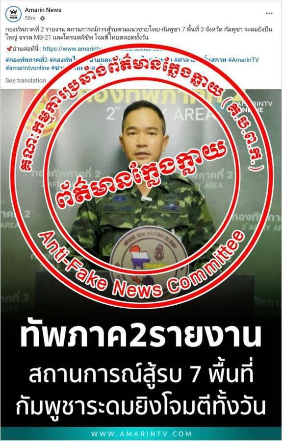 71 ឯកឧត្តម ទេព អស្នារិទ្ធ អនុរដ្ឋលេខាធិការ និងអ្នកនាំពាក្យក្រសួងព័ត៌មាន នៅថ្ងៃទី២៣ ខែធ្នូ ឆ្នាំ២០២៥ នេះ បានប្រាប់ឱ្យដឹងថា ថៃបានបន្តបង្កើតព័ត៌មានក្លែងក្លាយជាច្រើន ក្នុងនោះថៃក៏បានប្រើ បច្ចេកវិទ្យាAi ដើម្បីប្រឌិត កាឡៃការពិតជុំវិញស្ថានភាព ជម្លោះបច្ចុប្បន្ន និងថ្មីៗនេះបានបង្កើតរូបភាពអវិជ្ជមានប៉ះពាល់ធ្ងន់ធ្ងរ ដល់អង្គព្រះមហាក្សត្រ ថ្នាក់ដឹកនាំជាតិ រាជរដ្ឋាភិបាល កងទ័ព និងពលរដ្ឋកម្ពុជា, ពលរដ្ឋកម្ពុជាដែលជាជនស៊ីវិលស្លូតត្រង់ បានទទួលរងគ្រោះថ្នាក់រួចទៅហើយដោយសារការវាយប្រហារផ្នែកយោធារបស់ថៃដោយបំពានច្បាប់ ដោយក្នុងនោះប្រជាពលរដ្ឋចំនួនជាងកន្លះលាននាក់ បានបង្ខំចិត្តភៀសខ្លួនចេញពីភូមិឋានខ្លួន ហើយកំពុងទទួលរងនូវទុក្ខវេទនា ក្រោយពេលថៃបានទម្លាក់គ្រាប់បែក និងបានបន្តការវាយប្រហារ ដោយប្រដាប់អាវុធគ្រប់ធុនមកលើកម្ពុជា ដោយឥតរើសគោលដៅឡើយ។ ឯកឧត្តម ទេព អស្នារិទ្ធ បានឱ្យដឹងថា រាជរដ្ឋាភិបាល ក្រសួងព័ត៌មាន បាននិងកំពុងចាត់វិធាននានា ដើម្បីទប់ស្កាត់ព័ត៌មានក្លែងក្លាយ និងការផ្សាយព័ត៌មានបែបបំពុលផ្សេងៗ មិនឱ្យរីកសាយភាយ ធ្វើឱ្យប៉ះពាល់ដល់ការគ្រប់គ្រងស្ថានភាពបច្ចុប្បន្ន និងការទទួលព័ត៌មានរបស់ប្រជាពលរដ្ឋឡើយ។ ដូច្នេះសូមសាធារណៈជនបន្តរក្សាភាពនឹងនរ ដោយបន្តតាមដានព័ត៌មាន ពីប្រភពផ្លូវការ, សូមកុំចែកចាយព័ត៌មានប្រភេទដូចបានរៀបរាប់ជូនខាងលើ ពិសេស ព័ត៌មានអវិជ្ជមាន និងរូបភាពប្រឌិតដែលប៉ះពាល់ដល់ អង្គព្រះមហាក្សត្រ ថ្នាក់ដឹកនាំជាតិ រាជរដ្ឋាភិបាល កងទ័ព និងប្រជាជនយើង។ អ្នកនាំពាក្យក្រសួងព័ត៌មាន ក៏សូមអំពាវនាវដល់អ្នកប្រើបណ្តាញសង្គម ទាំងអស់ ចួលរួមទាំងអស់គ្នា ក្នុងកាលៈទេសៈដែលយើងជួបការលំបាកនេះ និងតទៅមុខ សូមរក្សាសុវត្ថិភាពពលរដ្ឋ កងទ័ព និងសហគមន៍យើង កុំបង្ហាញរូបភាព ដែលក្រសួងព័ត៌មានបានអំពាវនាវ និងហាមឃាត់មិនឱ្យផ្សាយឬចែកចាយ ដើម្បីចូលរួមរក្សាសន្តិសុខជាតិ សណ្តាប់ធ្នាប់សាធារណៈ ស្ថិរភាពនយោបាយ និងចូលរួមប្រឆាំងព័ត៌មានក្លែងក្លាយ។ ឯកឧត្តមអ្នកនាំពាក្យក្រសួងព័ត៌មាន សូមបញ្ជាក់ជូនអំពីស្ថានការណ៍ ដែលកំពុងកើតមានឡើងនេះថា ទន្ទឹមនឹងទង្វើឈ្លានពានដោយប្រដាប់អាវុធ គ្រប់ធុនមកលើកម្ពុជា ថៃក៏បានប្រើសង្គ្រាមសតិអារម្មណ៍តាមរយៈការបង្កើត ព័ត៌មានក្លែងក្លាយ បំភ្លៃ ប្រឌិតរឿងឡើងខុសពីការពិត, គឺការបង្កើតផ្សាយ Disinformation និង Malinformation, ដើម្បីបំពុលបរិយាកាសព័ត៌មាន បង្កភាពច្របូកច្របល់ និងការភាន់ច្រឡំក្នុងសាធារណមតិកម្ពុជា និងអន្តរជាតិ ជុំវិញស្ថានការណ៍ពិតដែលបាននិងកំពុងកើតមានឡើង ទាក់ទងនឹង ជម្លោះព្រំដែននេះ។ ឯកឧត្តមអ្នកនាំពាក្យក្រសួងព័ត៌មាន បានគូសបញ្ជាក់ថា ព័ត៌មានក្លែងក្លាយទា