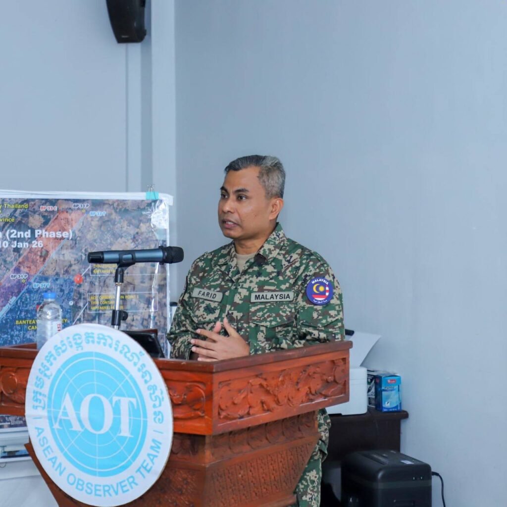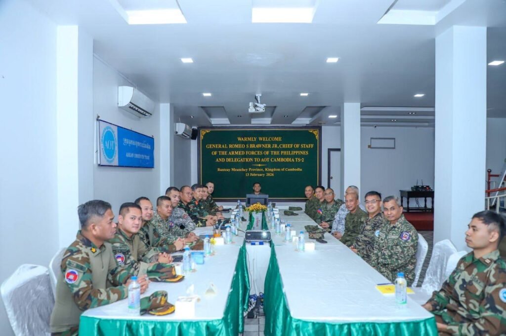 9នៅថ្ងៃសុក្រ ទី១៣ ខែកុម្ភៈ ឆ្នាំ២០២៦នេះ ក្រុមសម្របសម្រួល (CLG) នៃព្រះរាជាណាចក្រកម្ពុជា បានសម្របសម្រួលជូនដល់ក្រុមអ្នកសង្កេតការណ៍អាស៊ាន (AOT) ទទួលស្វាគមន៍ ឯកឧត្តម នាយឧត្តមសេនីយ៍ ROMEO S BRAWNER JR អគ្គមេបញ្ជាការ នៃកងទ័ពហ្វីលីពីន ដែលអញ្ជើញមកទស្សនកិច្ចទីតាំងមួយចំនួននៅក្នុងខេត្តបន្ទាយមានជ័យ។នៅវេលាម៉ោង ១០:០០នាទីព្រឹក គណៈប្រតិភូបានអញ្ជើញទៅទស្សនកិច្ចស្នាក់ការ២ ស្ថិតនៅក្រុងសិរីសោភ័ណ ដោយក្នុងឱកាសនោះ វរសេនីយ៍ឯក MOHD FARID BIN MOHD YUSOP ប្រធានក្រុមអ្នកសង្កេតការណ៍អាស៊ាន (AOT) ប្រចាំកម្ពុជាក៏បានធ្វើបទបង្ហាញជូនឯកឧត្តម អគ្គមេបញ្ជាការ និងគណៈប្រតិភូ ស្តីពីវឌ្ឍនភាពការងាររបស់ខ្លួនផងដែរ។សូមជម្រាបជូនផងដែរថា ឯកឧត្តម នាយឧត្តមសេនីយ៍ ROMEO S BRAWNER JR អគ្គមេបញ្ជាការ នៃកងទ័ពហ្វីលីពីន បានដឹកនាំគណៈប្រតិភូមកបំពេញទស្សនកិច្ចផ្លូវការនៅព្រះរាជាណាចក្រកម្ពុជា រយៈពេល ៤ថ្ងៃ គឺចាប់ពីថ្ងៃទី១១ រហូតដល់ថ្ងៃទី១៤ ខែកុម្ភៈ ឆ្នាំ២០២៦។ ក្នុងដំណើរទស្សនកិច្ចរបស់ ឯកឧត្តម នាយឧត្តមសេនីយ៍ អគ្គមេបញ្ជាការ នៃកងទ័ពហ្វីលីពីន មកកាន់ព្រះរាជាណាចក្រនាពេលនេះ គឺដើម្បីចុះមកពិនិត្យ និងសិក្សាស្វែងយល់ក្នុងការត្រៀមលក្ខណៈទទួល និងបំពេញតួនាទីជាប្រធានក្រុមអ្នកសង្កេតការណ៍អាស៊ាន (AOT) ក្នុងឆ្នាំ២០២៦ បន្តពីប្រទេសម៉ាឡេស៊ីនាពេលឆាប់ៗខាងមុខនេះ។សូមគូសបញ្ជាក់ផងដែរថា កម្ពុជាតែងតែផ្តល់ការគាំទ្រយ៉ាងពេញទំហឹងដល់យន្តការក្រុមអ្នកសង្កេតការណ៍អាស៊ាន (AOT) ព្រមទាំងសង្កត់ធ្ងន់ទៅលើសារៈសំខាន់មិនអាចខ្វះបាន ក្នុងការពង្រឹងតួនាទី និងអាណត្តិរបស់ AOT ដើម្បីផ្ទៀងផ្ទាត់ និងធានាការអនុវត្តបទឈប់បាញ់ឱ្យបានពេញលេញ និងប្រកបដោយប្រសិទ្ធភាព សំដៅលើកកម្ពស់តម្លាភាព គណនេយ្យភាព និងការជឿទុកចិត្តគ្នាទៅវិញទៅមក។អត្ថបទ និងរូបថត AKPចែករំលែក:Click to share on Facebook (Opens in new window)Click to email a link to a friend (Opens in new window)Click to share on LinkedIn (Opens in new window)Click to share on Twitter (Opens in new window)Click to share on Telegram (Opens in new window)រូបអ្នកនិពន្ធការផ្សព្វផ្សាយដោយអ្នកនិពន្ធ ឯកឧត្តមនាយឧត្តមសេនីយ៍ អគ្គមេបញ្ជាការ នៃកងទ័ពហ្វីលីពីន បន្តចុះសួរសុខទុក្ខជនភៀសសឹកកម្ពុជា ដែលកំពុងបន្តរស់នៅជំរំក្នុងវត្តកណ្តោល ក្នុងស្រុកថ្មពួក សម្តេចធិបតី និងលោកជំទាវបណ្ឌិត អញ្ជើញជួបសំណេះសំណាល និងសួរសុខទុក្ខគ្រួសារវីរកងទ័ពពលី វីរកងរាជអាវុធហត្ថពលី និងវីរនគរបាលពលីចំនួន១៨គ្រួសាររបស់ខេត្តឧត្តរមានជ័យ អគ្គមេបញ្ជាការ នៃកងទ័ពហ្វីលីពីន ចុះសង្កេតការណ៍ស្ថានភាពព្រំដែននៅតំបន់បឹងត្រកួន ឯកឧត្តម នាយឧត្តមសេនីយ៍ ROMEO S BRAWNER JR អគ្គមេបញ្ជាការ នៃកងទ័ពហ្វីលីពីន អញ្ជើញមកទស្សនកិច្ចទីតាំងមួយចំនួននៅក្នុងខេត្តបន្ទាយមានជ័យ ឯកឧត្តម បណ្ឌិតសភាចារ្យ អ៊ុក រ៉ាប៊ុន ជម្រុញឲ្យមន្ត្រីក្រុមការងារចុ