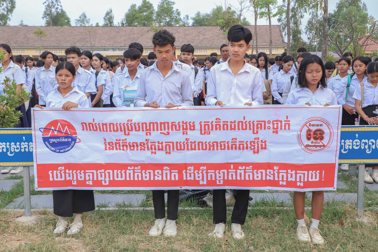 2កំពង់ឆ្នាំង ៖លោក ហឹង ចូច អនុប្រធានមន្ទីរព័ត៌មាន និងជាប្រធានក្រុមការងារព័ត៌មាន និងសាធារណមតិ ខេត្តកំពង់ឆ្នាំង បានអំពាវនាវឲ្យ លោកគ្រូ អ្នកគ្រូ និងសិស្សានុសិស្សត្រូវប្រុងប្រយ័ត្ន ចំពោះព័ត៌មានក្លែងក្លាយ ។បើមិនច្បាស់សូមកុំជឿ និងចែកចាយបន្ត ។លោក អនុប្រធានមន្ទីរ បានថ្លែងអំពាវនាវបែបនេះ នៅក្នុងយុទ្ធនាការប្រឆាំងព័ត៌មានក្លែងក្លាយ ក្រោមទិសស្លោក «និយាយថាទេ ចំពោះព័ត៌មានក្លែងក្លាយ » នៅវិទ្យាល័យ ហ៊ុន សែន ទឹកផុស កាលពីថ្ងៃទី២៣ ខែកុម្ភៈ ឆ្នាំ២០២៦ ។លោក ហឹង ចូច បញ្ជាក់ថា ព័ត៌មានជាច្រើនត្រូវបានផ្សព្វផ្សាយតាមបណ្តាញសង្គម ដែលមានលក្ខណៈចម្រុះ ក្នុងនោះក៏មានជនខិលខូចឆ្លៀតឳកាស យកមធ្យោបាយបែបថ្មីនេះ ទៅបម្រើឲ្យអំពើទុច្ចរិតរបស់ខ្លួន ដូចជាការផ្សព្វផ្សាយព័ត៌មានក្លែងក្លាយ និងព័ត៌មានបំពុលជាដើម ។ ការផ្សព្វផ្សាយព័ត៌មានក្លែងក្លាយ និងព័ត៌មានបំពុលនេះ បានបង្ករគ្រោះថ្នាក់សម្រាប់អ្នកទទួលព័ត៌មាន ដែលមិនមែនជាព័ត៌មាន ផ្តល់នូវសុវត្តិភាព ។ប្រឈមនឹងបញ្ហានេះ លោក អនុប្រធានមន្ទីរព័ត៌មាន ខេត្តកំពង់ឆ្នាំង បានអំពាវនាវឲ្យលោកគ្រូ អ្នកគ្រូ និងសិស្សានុសិស្ស ត្រូវមានការប្រុងប្រយ័ត្នឲ្យបានកាន់តែខ្លាំង ចំពោះព័ត៌មានក្លែងក្លាយ ត្រូវនិយាយថាទេចំពោះព័ត៌មានក្លែងក្លាយ ៕ អត្ថបទ និងរូបថត : សន គន្ធនិវឌ្ឍន៍ចែករំលែក:Click to share on Facebook (Opens in new window)Click to email a link to a friend (Opens in new window)Click to share on LinkedIn (Opens in new window)Click to share on Twitter (Opens in new window)Click to share on Telegram (Opens in new window)រូបអ្នកនិពន្ធការផ្សព្វផ្សាយដោយអ្នកនិពន្ធ អនុប្រធានមន្ទីរព័ត៌មាន ខេត្តកំពង់ឆ្នាំង អំពាវ នាវឲ្យសិស្សានុសិស្ស ប្រុងប្រយ័ត្នចំពោះព័ត៌មានក្លែងក្លាយ ក្រុមការងារព័ត៌មាននិងសាធារណមតិ នៃមន្ទីរព័ត៌មានខេត្តកំពង់ឆ្នាំង បន្តធ្វើយុទ្ធនាការប្រឆាំងព័ត៌មានក្លែងក្លាយ នៅវិទ្យាល័យហ៊ុន សែន ទឹកផុស បណ្តាអង្គទូត និងទីភ្នាក់ងារបរទេស អញ្ជើញពិនិត្យមើលសកម្មភាពរំលោភបំពានរបស់ថៃ នៅតំបន់បឹងត្រកួន គំនូរសិល្បៈដើម្បីសន្តិភាព លេចចេញជារូបរាងបណ្តើរៗហើយ នៅមុខវត្តបទុមវតី ដែលមានទំហំធំជាងគំនូរនៅខេត្តសៀមរាប បណ្តាអង្គទូត និងទីភ្នាក់ងារបរទេស អញ្ជើញចុះពិនិត្យមើលការបង្កើតស្ថានភាពថ្មីនៅលើទីតាំងជាក់ស្តែង នៅភូមិជោគជ័យ និងភូមិព្រៃចាន់ បណ្តាអង្គទូត និងទីភ្នាក់ងារបរទេស អញ្ជើញពិនិត្យមើលស្ថានភាពជនភៀសសឹកនៅមណ្ឌលសុវត្ថិភាពវត្តចាន់ស៊ី Sorn Kunnivoth តាមតាន អត្ថបទពាក់ព័ន្ធ ការកត់ត្រាទុក ក្រុមការងារព័ត៌មាននិងសាធារណមតិ នៃមន្ទីរព័ត៌មានខេត្តកំពង់ឆ្នាំង បន្តធ្វើយុទ្ធនាការប្រឆាំងព័ត៌មានក្លែងក្លាយ នៅវិទ្យាល័យហ៊ុន សែន ទឹកផុស February 24, 2026 ការកត់ត្រាទុក បណ្តាអង្គទូត និងទីភ្នាក់ងារបរទេស អញ្ជើញពិនិត្យមើលសកម្មភ
