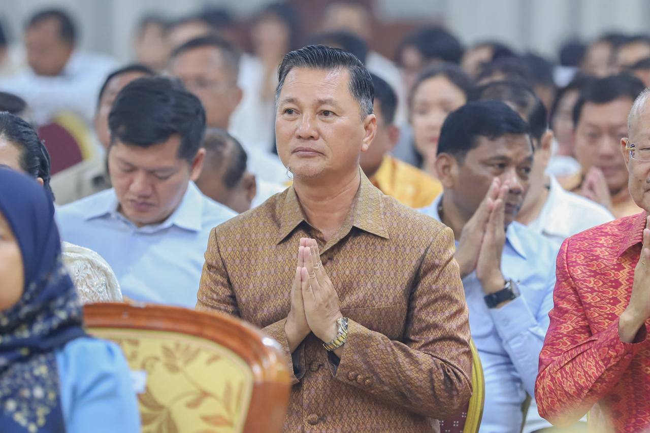 108 កំពង់ឆ្នាំង ៖រដ្ឋបាលខេត្តកំពង់ឆ្នាំង នារសៀលថ្ងៃទី១០ ខែមេសា ឆ្នាំ២០២៦ បានរៀចំធ្វើពិធីសូត្រមន្តចំរើនសិរីសួស្តី ក្នុងឱកាសបុណ្យចូលឆ្នាំថ្មី ប្រពៃណីជាតិ ឆ្នាំមមី អដ្ឋស័ក ពុទ្ធសករាជ ២ ៥៧០ក្រោមអធិបតីភាព ឯកឧត្តម ស៊ុន សុវណ្ណារិទ្ធិ អភិបាលខេត្តកំពង់ឆ្នាំង និងលោកជំទាវ ឯកឧត្តម ស៊ីវ រុន ប្រធានក្រុមប្រឹក្សាខេត្ត និង លោកជំទាវព្រមទាំងមានការអញ្ជើញចូលរួម ពីសំណាក់ ឯកឧត្តម លោកជំទាវ ជាសមាជិក សមាជិការ ព្រឹទ្ធសភា រដ្ឋសភា ក្រុមប្រឹក្សាខេត្ត អភិបាលរងខេត្ត និងមន្រ្តីរាជការតាមមន្ទីរអង្គភាពជុំវិញខេត្តផងដែរ ។ ពិធីនេះបានប្រារព្វធ្វើតាមទំនាមទម្លាប់ ដោយបាននិមន្តព្រះសង្ឃសូត្រមន្តចម្រើនព្រះបរិត ជយន្តោសិរីសួស្តី ជ័យមង្គលកើតមានដល់ប្រជាពលរដ្ឋ មន្រ្តីរាជការគ្រប់លំដាប់ថ្នាក់ ។ ឯកឧត្តម អភិបាលខេត្ត និង លោកជំទាវបានបួងសួងដល់គុណបុណ្យព្រះរតនត្រ័យ ទេវតាឆ្នាំថ្មី និង វត្ថុស័ក្តិសិទ្ធិក្នុងលោក ប្រទានពរជ័យសិរីមង្គល បវរមហាប្រសើរ ដល់ថ្នាក់ដឹកនាំ និងមន្រ្តីរាជការក្នុងខេត្តទាំងអស់សូមមានសុខភាពល្អ ដើម្បីបន្តអភិវឌ្ឍន៍ខេត្តកំពង់ឆ្នាំង ឲ្យមានការរីកចម្រើនបន្ថែមទៀត ៕អត្ថបទ ហឹង ចូច /រូបថត សន គន្ធនិវឌ្ឍន៍ ចែករំលែក: Share on Facebook (Opens in new window) Facebook Email a link to a friend (Opens in new window) Email Share on LinkedIn (Opens in new window) LinkedIn Share on X (Opens in new window) X Share on Telegram (Opens in new window) Telegram រូបអ្នកនិពន្ធ ការផ្សព្វផ្សាយដោយអ្នកនិពន្ធ រដ្ឋមន្ត្រីក្រសួងព័ត៌មាន ផ្តាំមន្ទីរព័ត៌មានខេត្តតាកែវ ប្រឹងប្រែងធ្វើការឲ្យបានល្អប្រសើរជាងមុន សកម្មជាងមុន លើការផ្សព្វផ្សាយព័ត៌មាន សម្តេចធិបតី ហ៊ុន ម៉ាណែត៖ ទោះបីយន្តការការទូតមានតែ១% ក៏ត្រូវតែព្យាយាមឱ្យអស់លទ្ធភាព ដើម្បីបញ្ចៀសការបង្ហូរឈាម ជុំវិញជម្លោះព្រំដែន នាយករដ្ឋមន្ត្រីកម្ពុជាសង្ឃឹមថា មេដឹកនាំថៃនឹងរៀបចំក្បាលម៉ាស៊ីនJBCជួបប្រជុំជាមួយកម្ពុជា រដ្ឋបាលខេត្តកំពង់ឆ្នាំងធ្វើពិធីសូត្រមន្តចំរើនសិរីសួស្តី ក្នុងឱកាសបុណ្យចូលឆ្នាំថ្មីប្រពៃណីជាតិ រថយន្តក្រុង១០គ្រឿងត្រៀមសម្រាប់ដឹកជញ្ជូនប្រជាពលរដ្ឋមកលេងស្រុកកំណើត គោលដៅភ្នំពេញ-កំពង់ឆ្នាំង នាវាចម្បាំងរបស់រុស្ស៊ីចំនួន២គ្រឿង ចូលចតនៅកំពង់ផែស្វយ័តក្រុងព្រះសីហនុ ដើម្បីបំពេញទស្សនកិច្ចរយៈពេល៣ថ្ងៃនៅកម្ពុជា Sorn Kunnivoth តាមតាន អត្ថបទពាក់ព័ន្ធ ការកត់ត្រាទុក រដ្ឋមន្ត្រីក្រសួងព័ត៌មាន ផ្តាំមន្ទីរព័ត៌មានខេត្តតាកែវ ប្រឹងប្រែងធ្វើការឲ្យបានល្អប្រសើរជាងមុន សកម្មជាងមុន លើការផ្សព្វផ្សាយព័ត៌មាន April 11, 2026 ការកត់ត្រាទុក សម្តេចធិបតី ហ៊ុន ម៉ាណែត៖ ទោះបីយន្តការការទូតមានតែ១% ក៏ត្រូវតែព្យាយាមឱ្យអស់លទ្ធភាព ដើម្បីបញ្ចៀសការបង្ហូរឈាម ជុំវិញជម្លោះព្រំដែន April 11, 2026 ការកត់ត្រាទុក នាយករដ្ឋមន